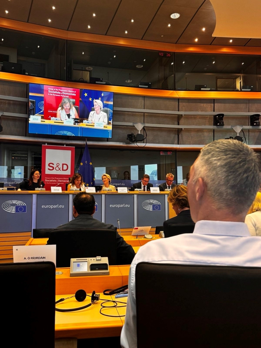 Skupina Socialistov in demokratov v Evropskem parlamentu je včeraj opravila temeljito tri-urno zaslišanje predsednice Evropske komisije Ursule von der Leyen, ki se poteguje za vnovično izvolitev. Na za javnost zaprtem srečanju je evropski poslanec Matjaž Nemec (S&D/SD) aktualno predsednico pozval, da se opredeli do nezakonitih nadzorov na schengenskih mejah in dvojnih meril EU do vojne v Gazi.